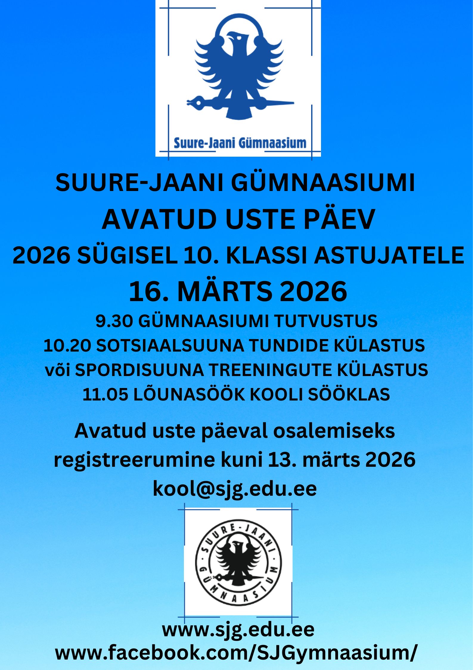 Ootame uusi õppureid Suure-Jaani Gümnaasiumi 2026 sügisel avatavasse 10.klassi.